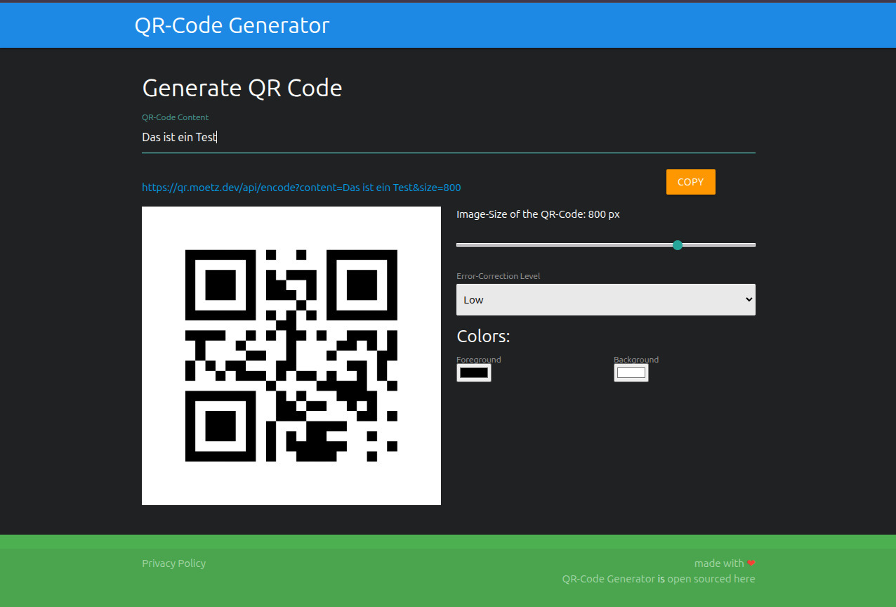 This is a very small page to easily be able to create QR codes (also with an API):