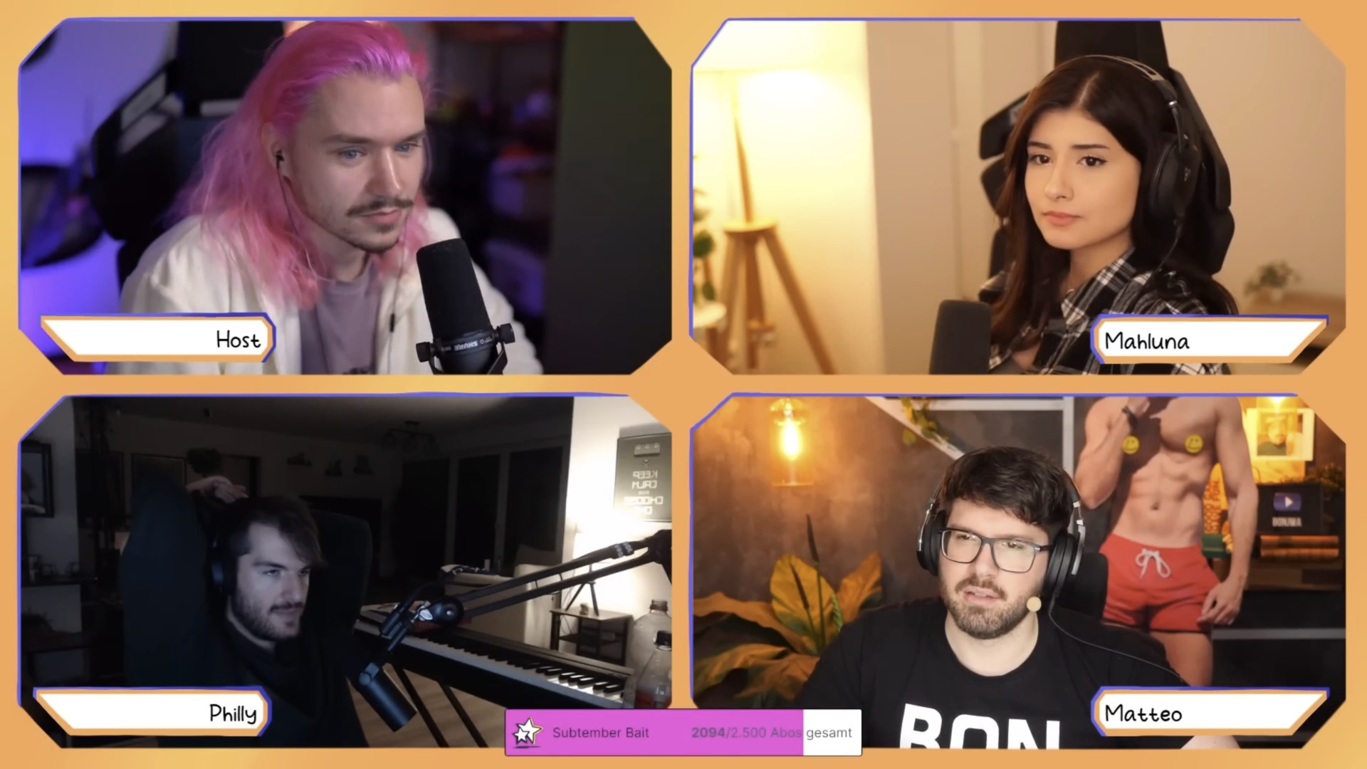 Vlesk hosted a "Genial daneben"-like stream show, where a funny fact / statement has been dropped, and contestants would try to guess the reasoning of those facts.