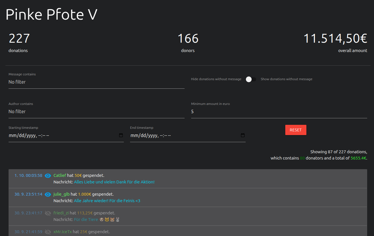Additionally, for the PinkePfote 4 Stream onsite in October 2024, a fullscreen donation amount website has been created, to show on one of the monitors in the studio.